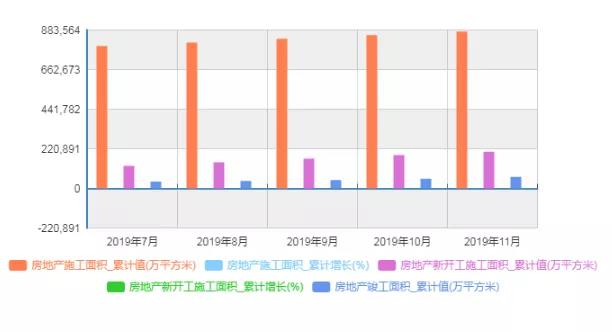 (2019年7-11月房地產(chǎn)施工與竣工面積,數(shù)據(jù)圖表來源:國家統(tǒng)計局)