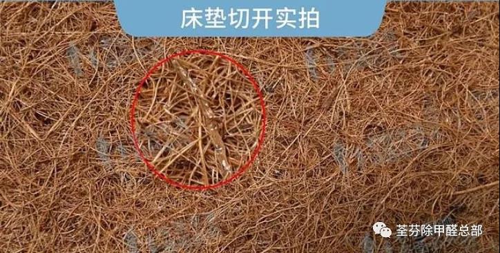 但是,這些方法都相對比較片面。首先,市面上的棕墊,一般有3種粘合工藝,除了化學(xué)膠水粘結(jié),還有天然乳膠粘接,和熱熔棉纖維粘接,后兩種比較環(huán)保,但這兩種棕墊剪開后,一樣有大段類似膠水的痕跡,用肉眼并不好分辨。